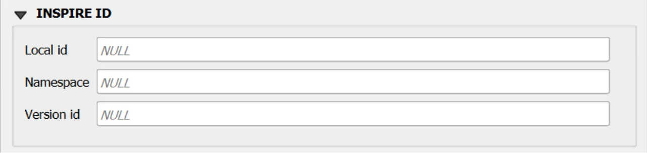 Local id — Local identifier assigned by the data provider; unique within its namespace.Namespace — Namespace that uniquely identifies the data source/domain of the spatial object.Version id — Identifier of the specific version of the object; optional (voidable) and used to distinguish different versions of the same object.Important