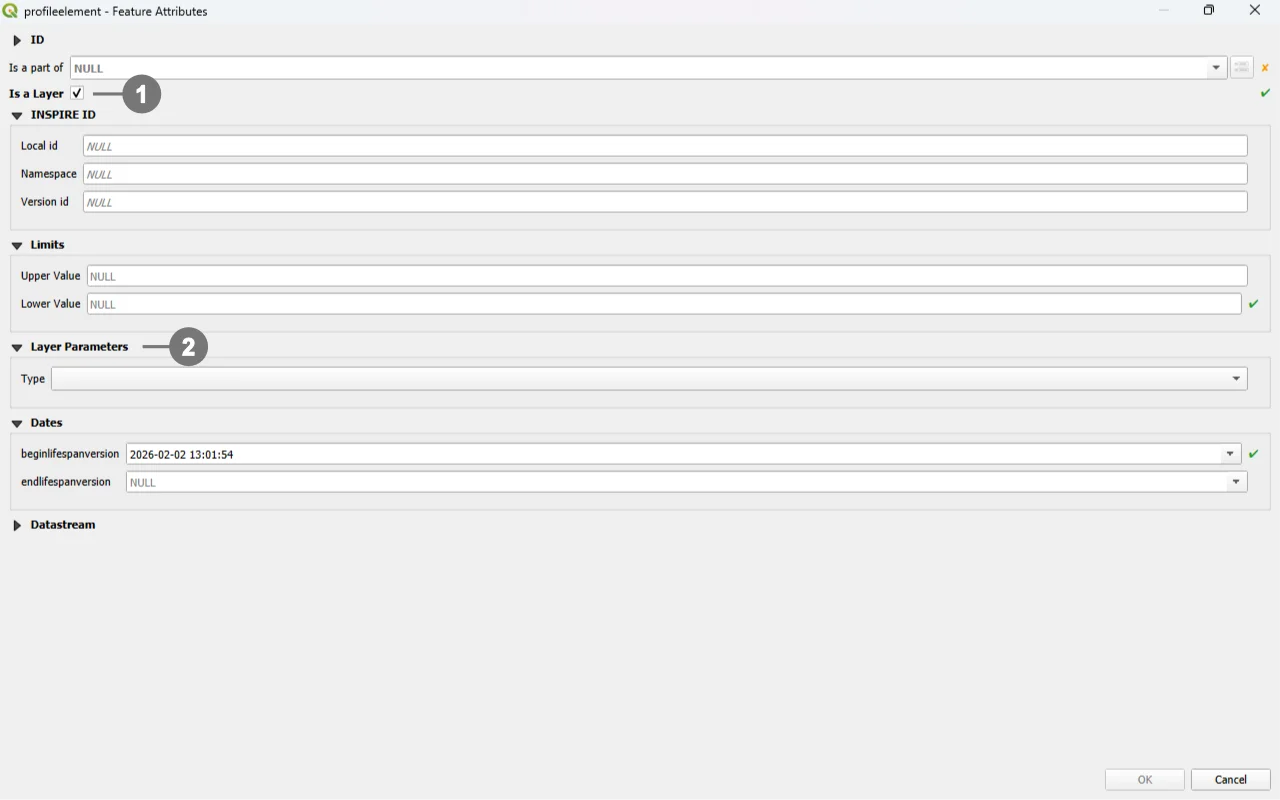 A Profile Element does not contain any geometry. To enable editing through forms, follow the instructions provided in the document Editing Records Through a QGIS Form.